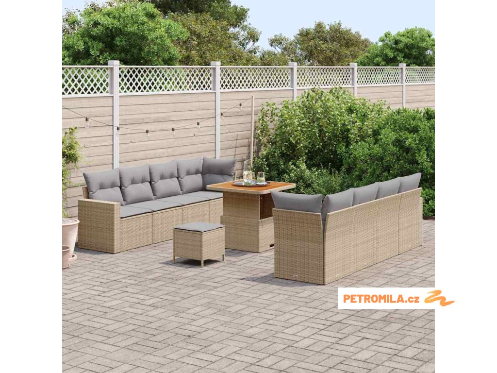 Sada zahradních pohovek 12 pcs Béžová a Světle šedá polyratan