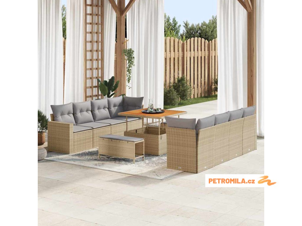 Sada zahradních pohovek 12 pcs Béžová a Světle šedá polyratan