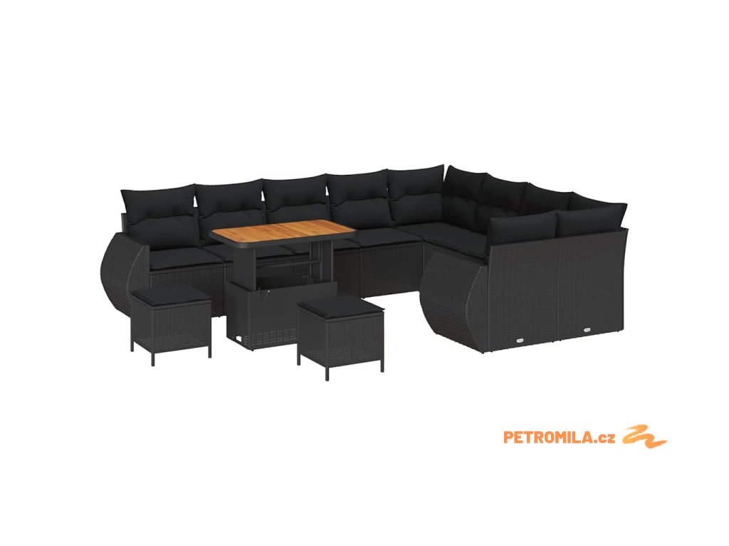 Sada zahradních pohovek 12 pcs Černá 90 x 55 x 71 cm