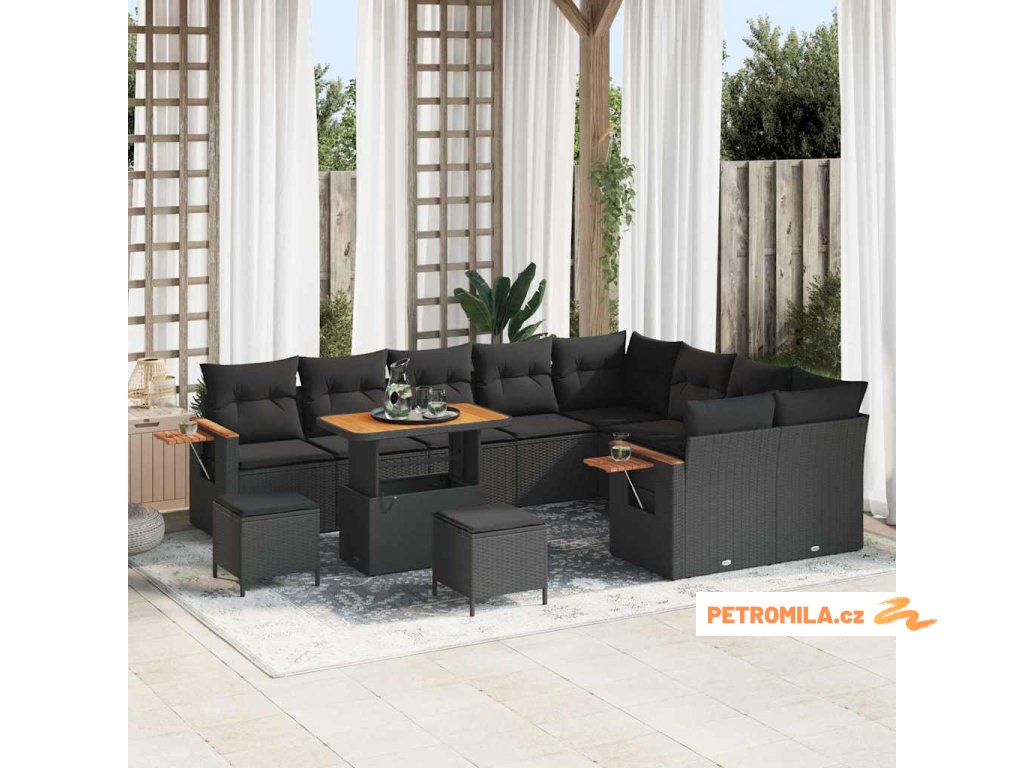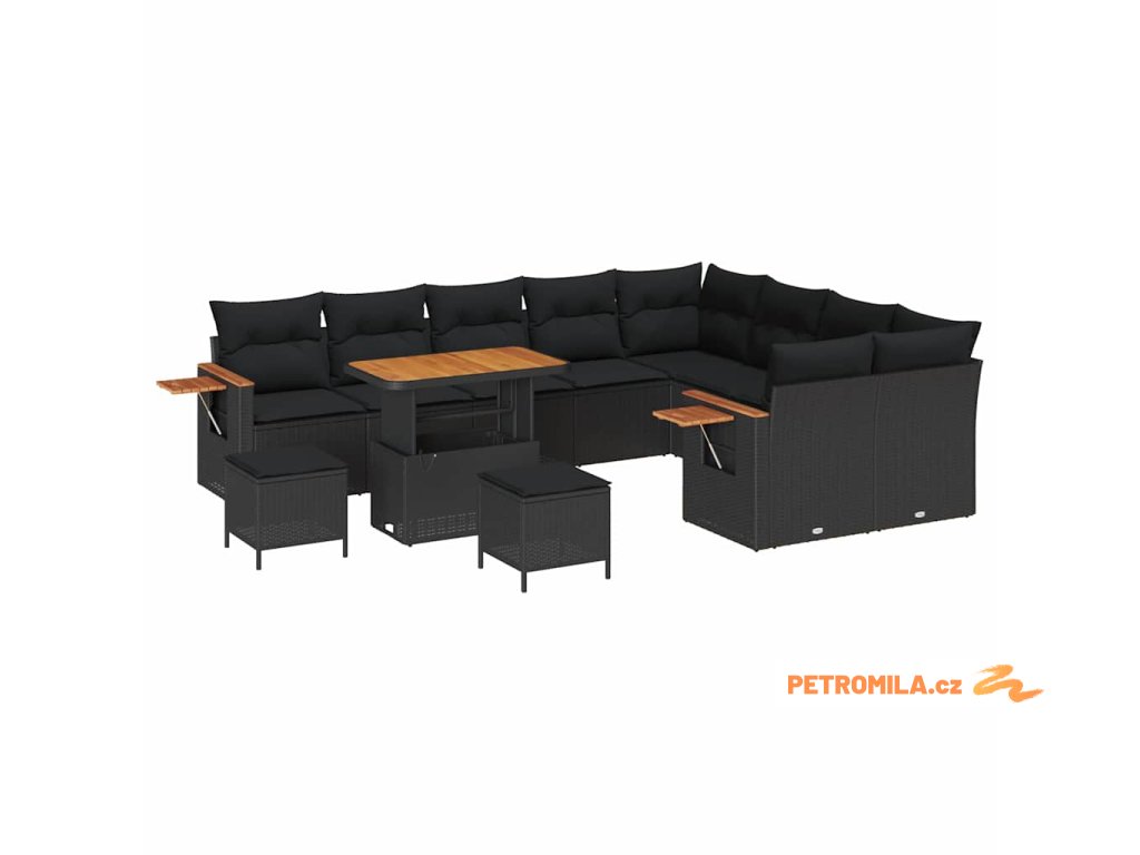 Sada zahradních pohovek 12 pcs Černá 90 x 55 x 71 cm