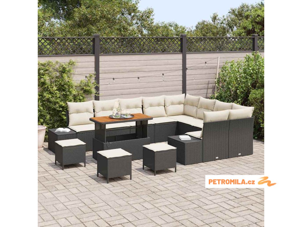 Sada zahradních pohovek 12 pcs Černá a krémová 110 x 55 x 71 cm