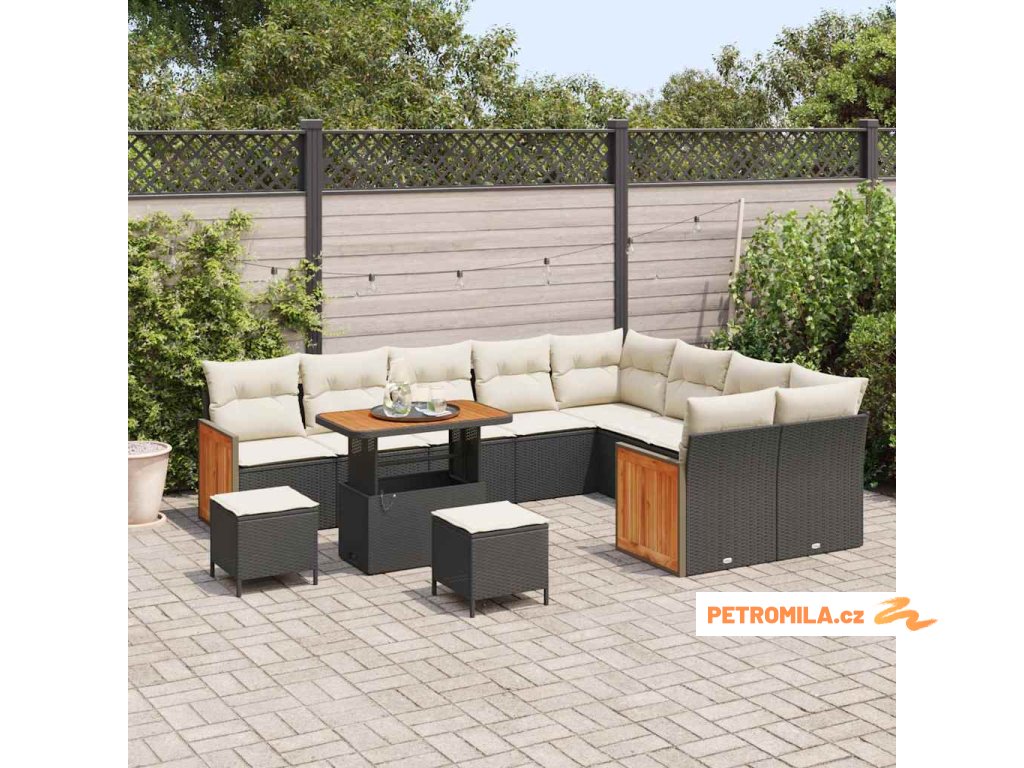 Sada zahradních pohovek 12 pcs Černá a krémová 90 x 55 x 71 cm