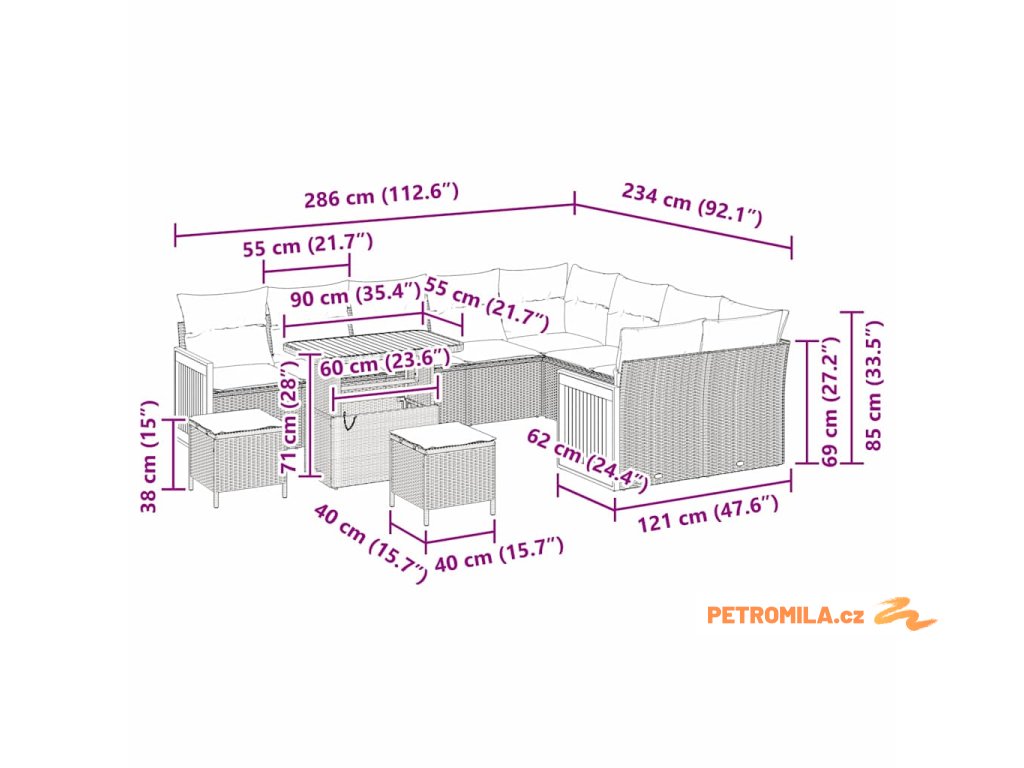 - Posezení: 55 x 55 cm (Š x H)