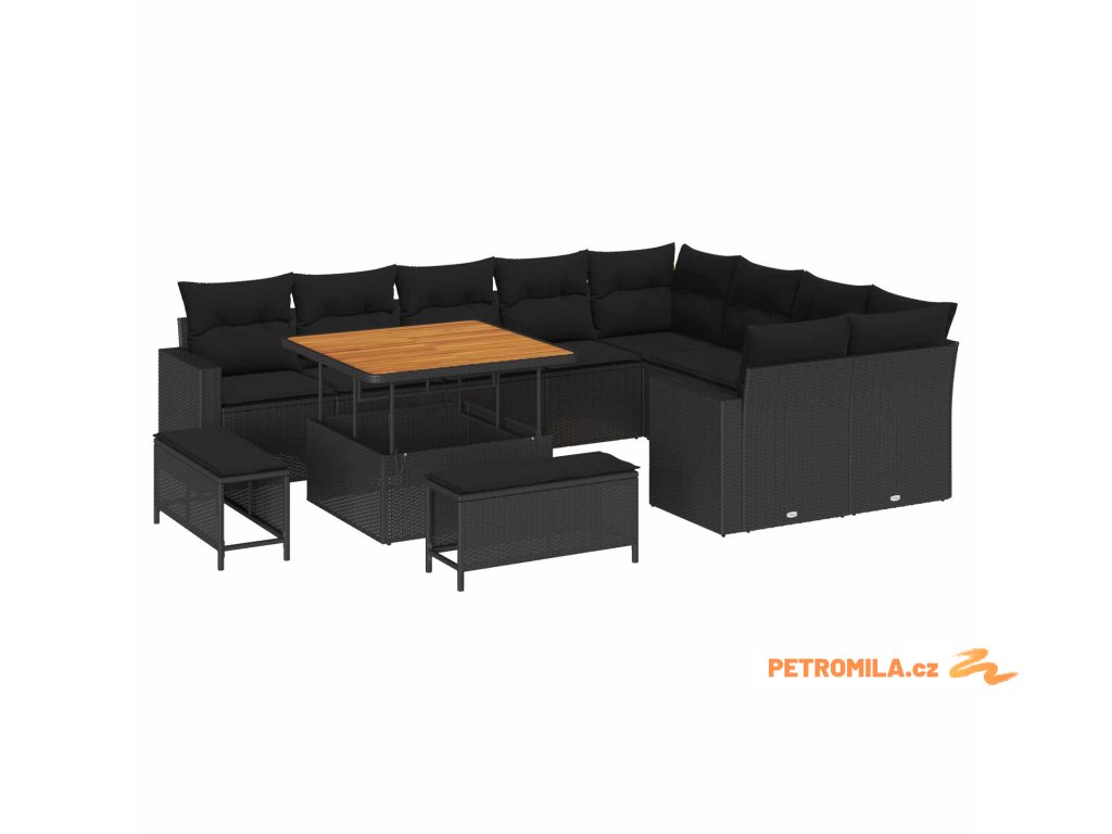 Sada zahradních pohovek 12 pcs Černá polyratan