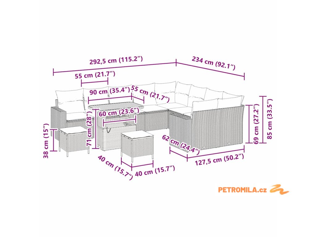 - Celkové rozměry: 90 x 55 x 71 cm (D x Š x V)