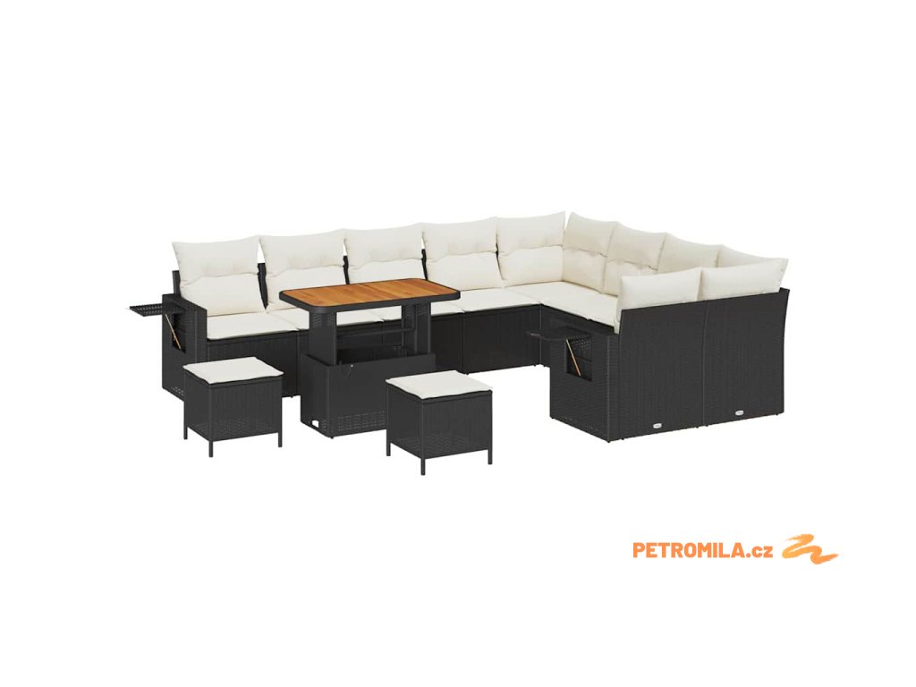 Sada zahradních pohovek 12 pcs Černá polyratan
