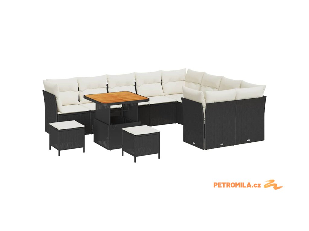 Sada zahradních pohovek 12 pcs Černá polyratan