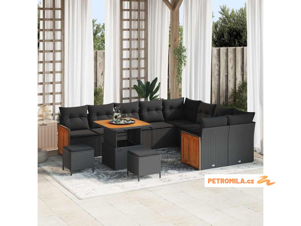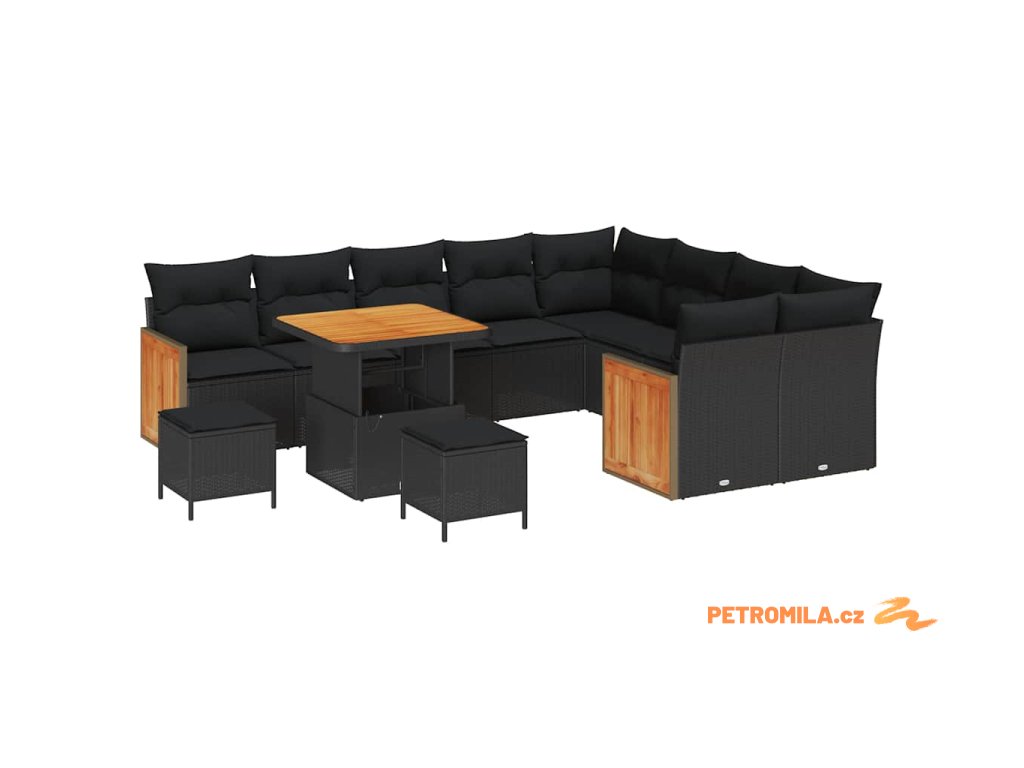 Sada zahradních pohovek 12 pcs Černá polyratan