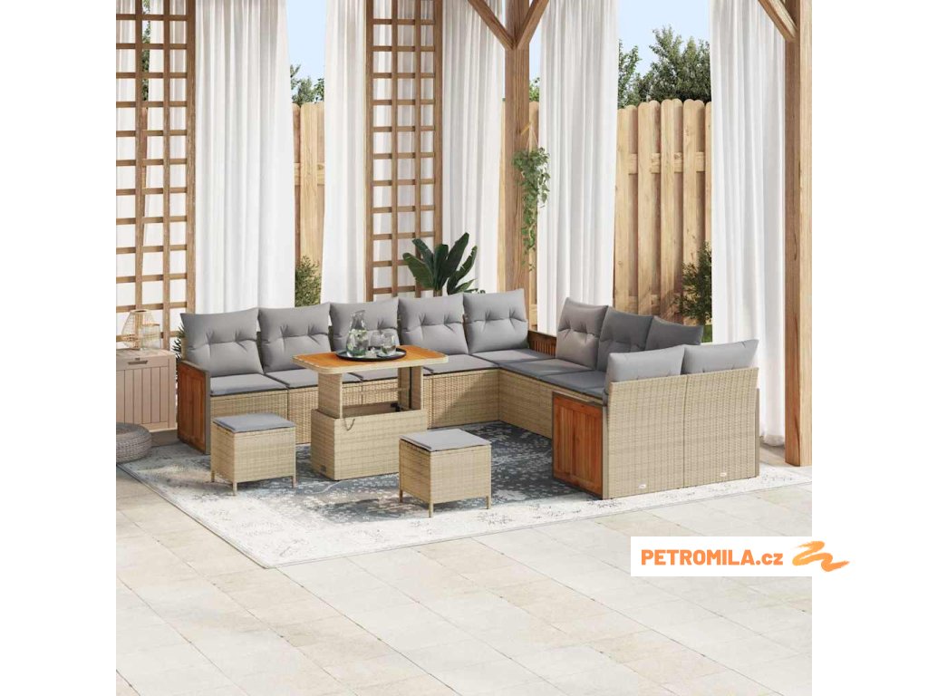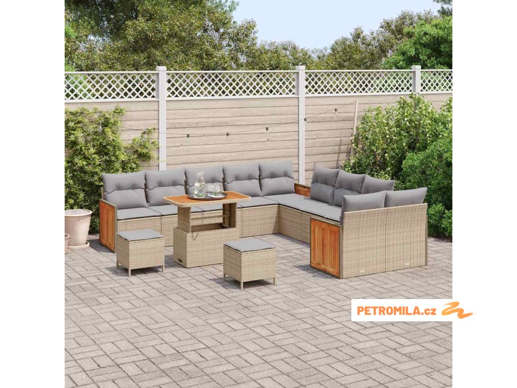 - Materiály: Tato krásná zahradní souprava je vyrobená z poly ratanu a masivního akátového dřeva. Poly ratan je odolný a ideální na ven, a akátové dřevo jí dodává hezký přírodní vzhled.