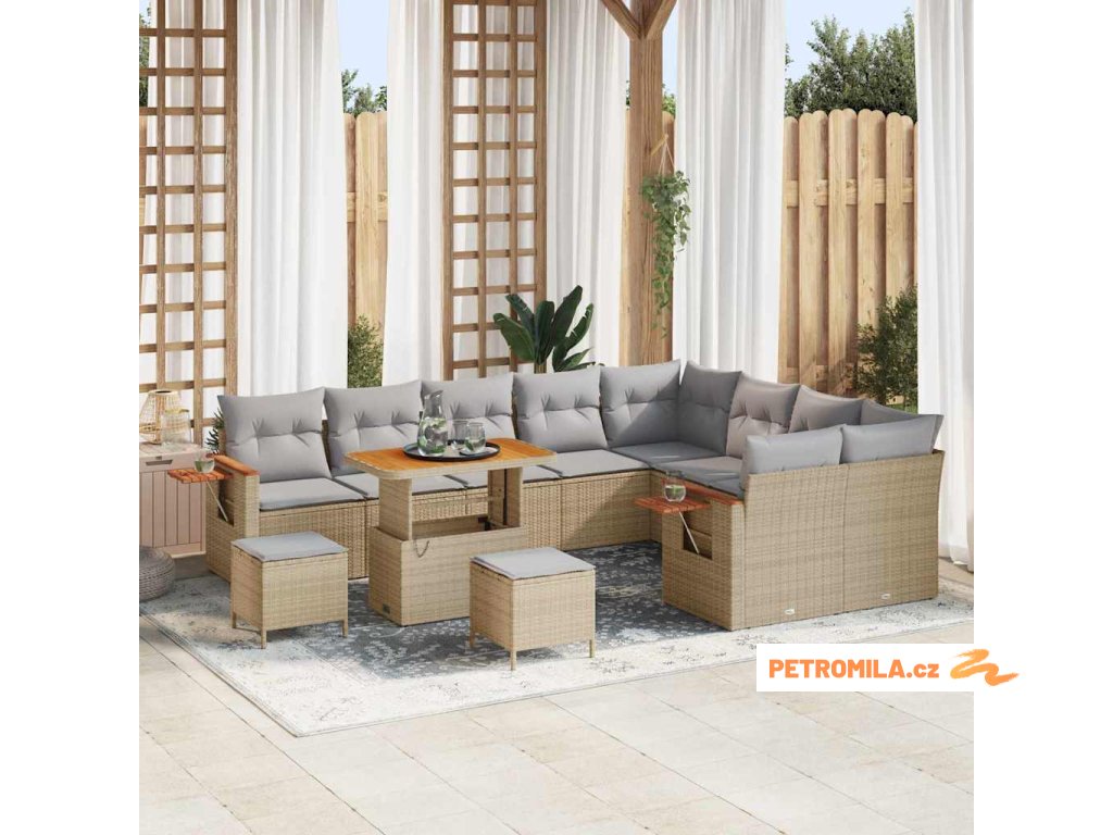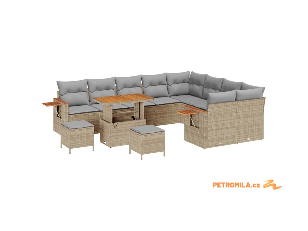 Sada zahradních pohovek 13 pcs Béžová a Světle šedá polyratan