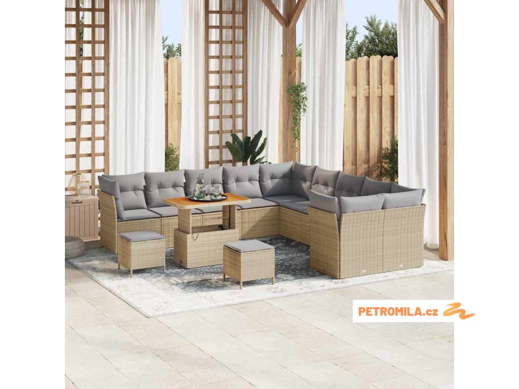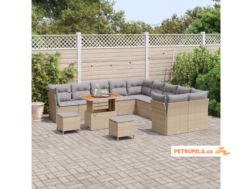 Sada zahradních pohovek 13 pcs Béžová a Světle šedá polyratan