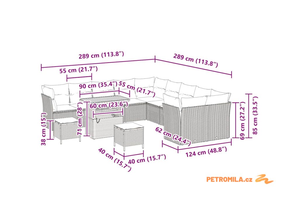 Sada zahradních pohovek 13 pcs Béžová polyratan