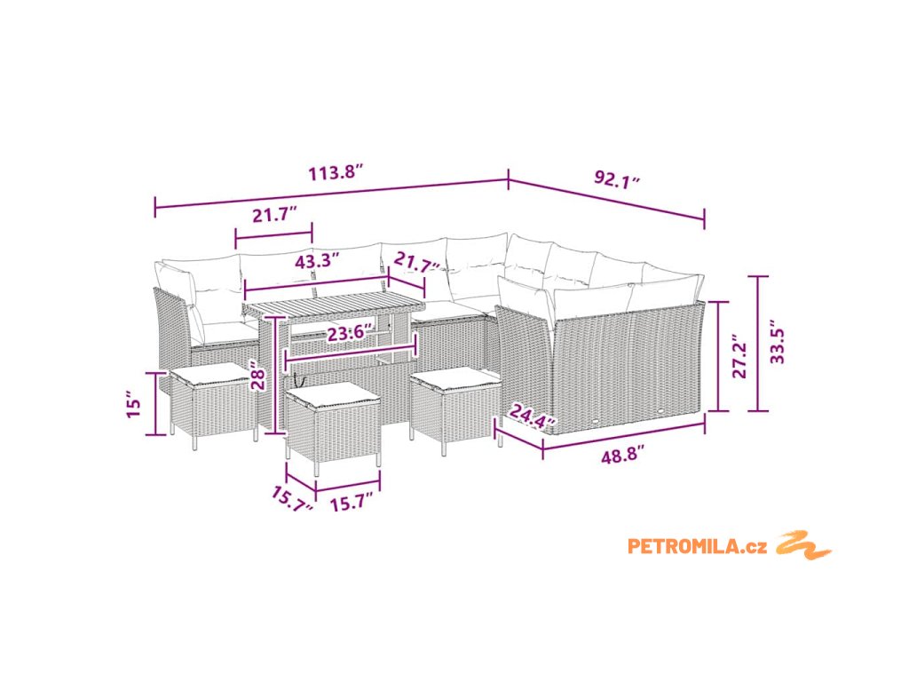 - Materiály: Udělaný z poly ratanu a práškově lakované oceli, tenhle sofa set spojuje styl s praktičností. Poly ratan mu dává luxusní tkaný vzhled, zatímco práškově lakovaná ocel zajistí, že nezrezaví - ideální volba na jarní a letní akce. Masivní akáciové dřevo dodává přírodní atmosféru, skvěle sladí moderni a rustikální styl.