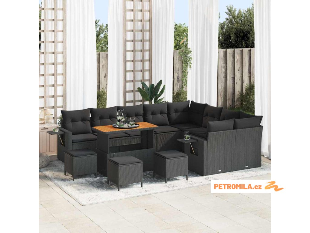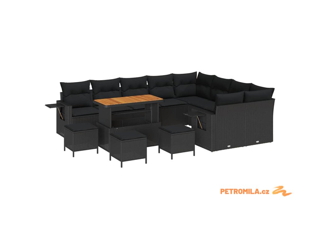 Sada zahradních pohovek 13 pcs Černá 110 x 55 x 71 cm