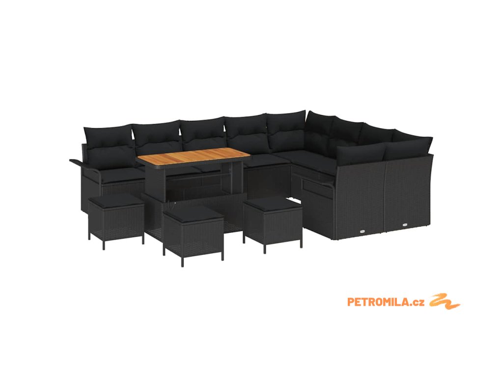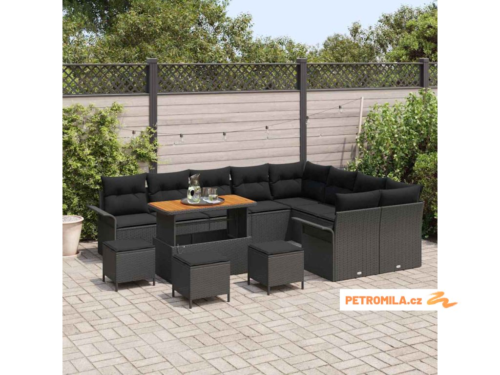 Sada zahradních pohovek 13 pcs Černá 110 x 55 x 71 cm