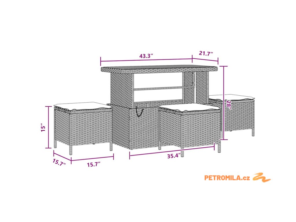 - Materiál: Polyratan a práškově lakovaná ocel