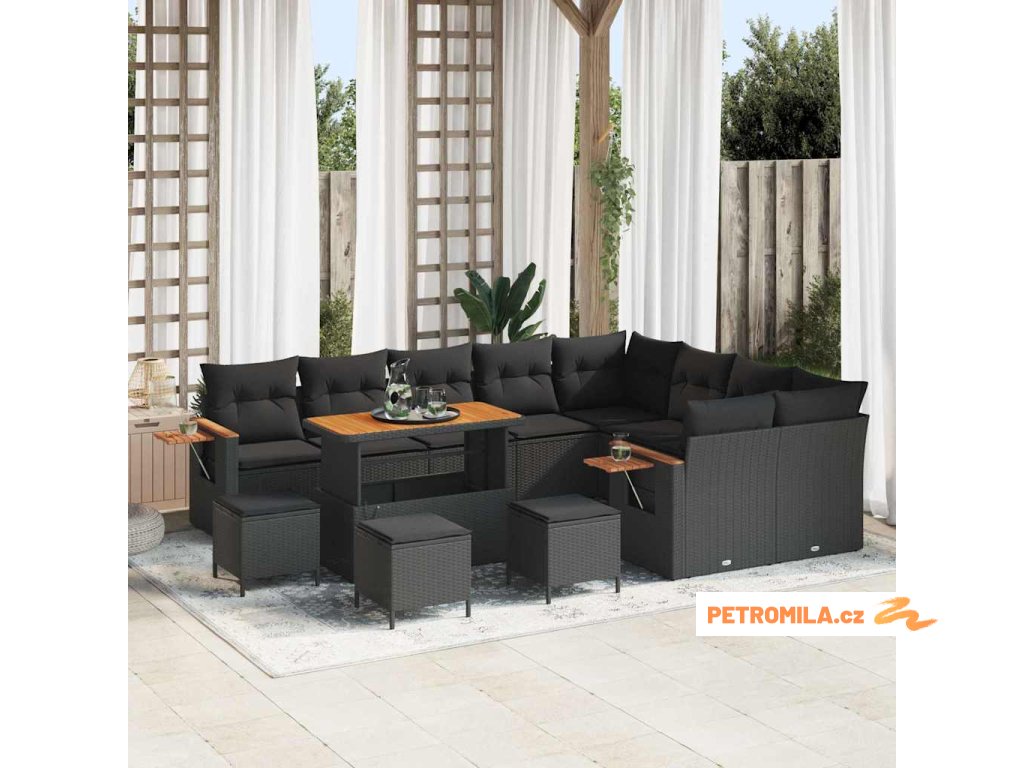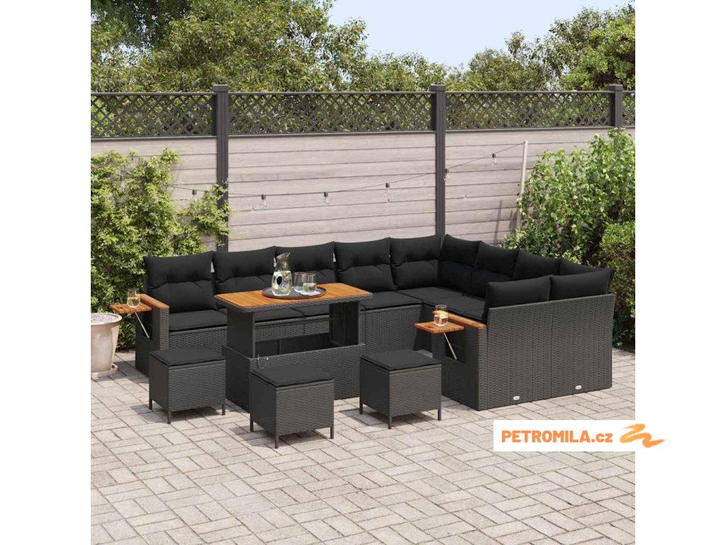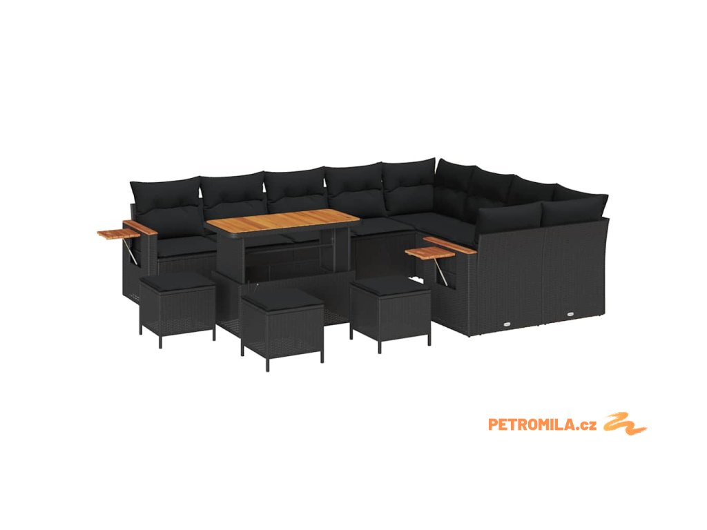 Sada zahradních pohovek 13 pcs Černá 110 x 55 x 71 cm