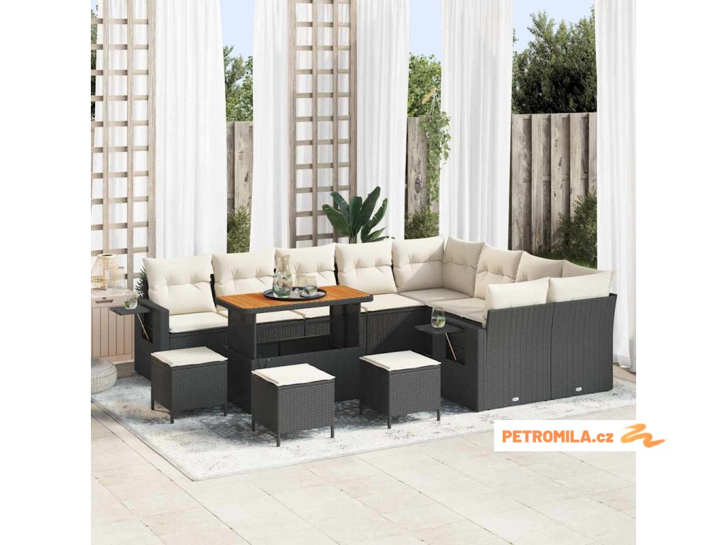 Sada zahradních pohovek 13 pcs Černá a krémová 110 x 55 x 71 cm