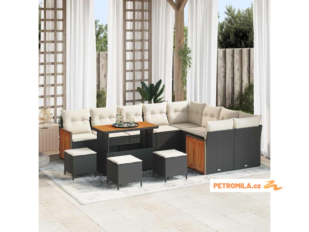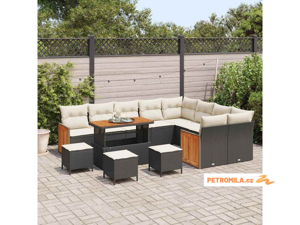 Sada zahradních pohovek 13 pcs Černá a krémová polyratan