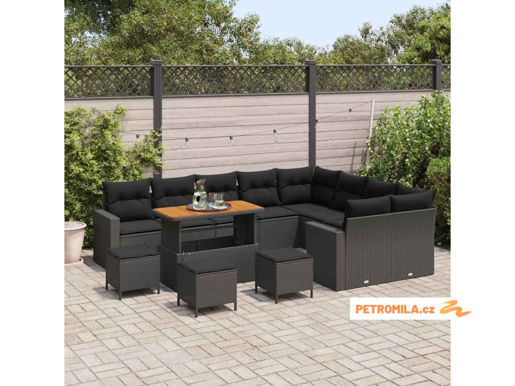 Sada zahradních pohovek 13 pcs Černá polyratan