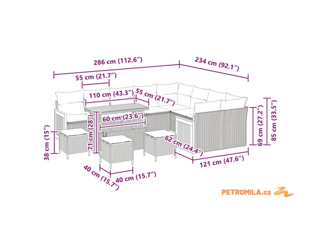 - Celkové rozměry: 110 x 55 x 71 cm (D x Š x V)