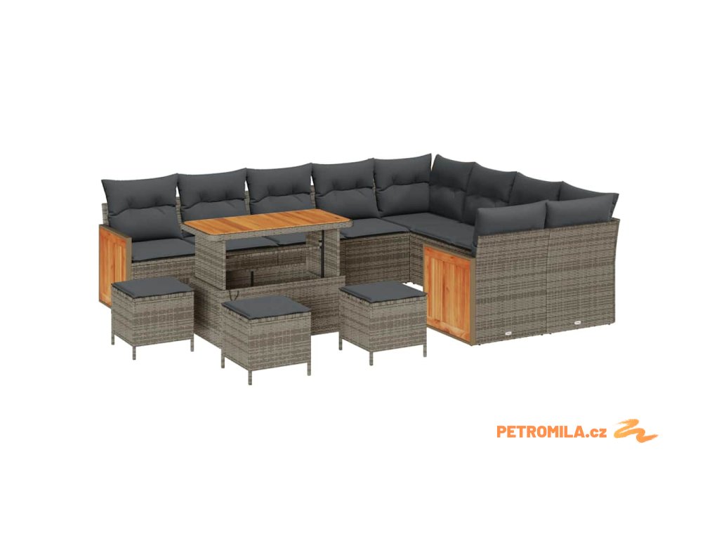 Sada zahradních pohovek 13 pcs Šedá Tmavě šedá polyratan