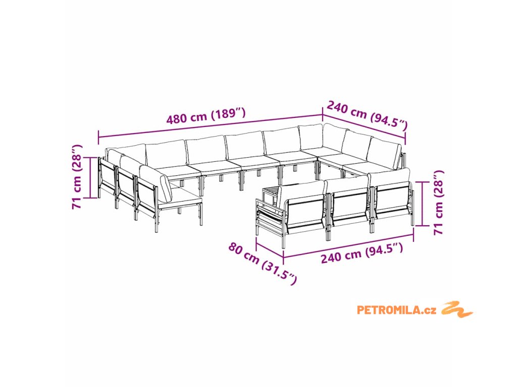 Sada zahradních pohovek 14 pcs Antracit Ocel