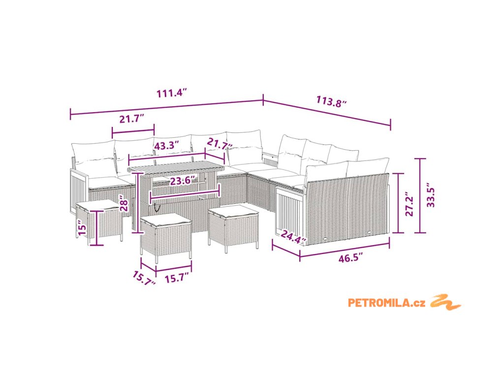 Moderní zahradní sedací souprava má super design, ideální pro venkovní prostory. Je navržená tak, aby pohodlí a styl správně spojila, s jednoduchými liniemi a praktičností, která dodává moderní šmrnc každé zahradě nebo terase.
