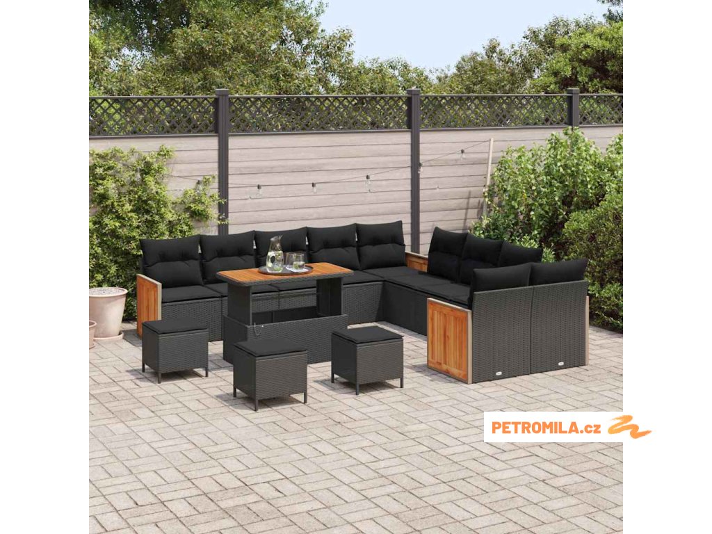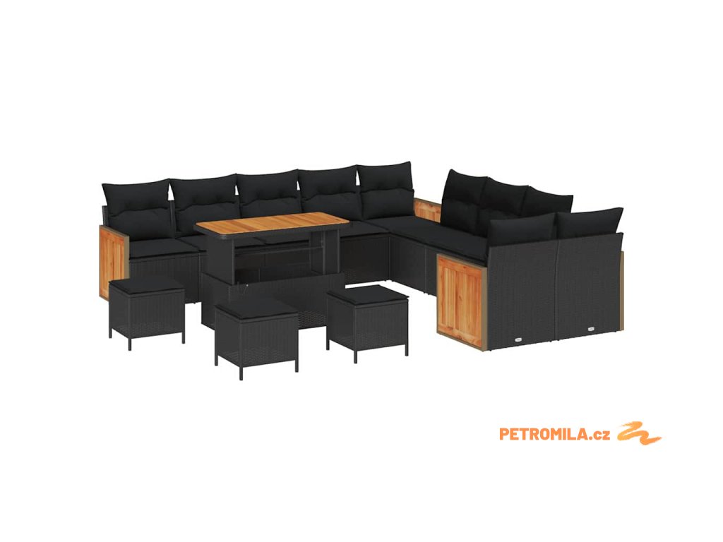 Sada zahradních pohovek 14 pcs Černá 110 x 55 x 71 cm polyratan