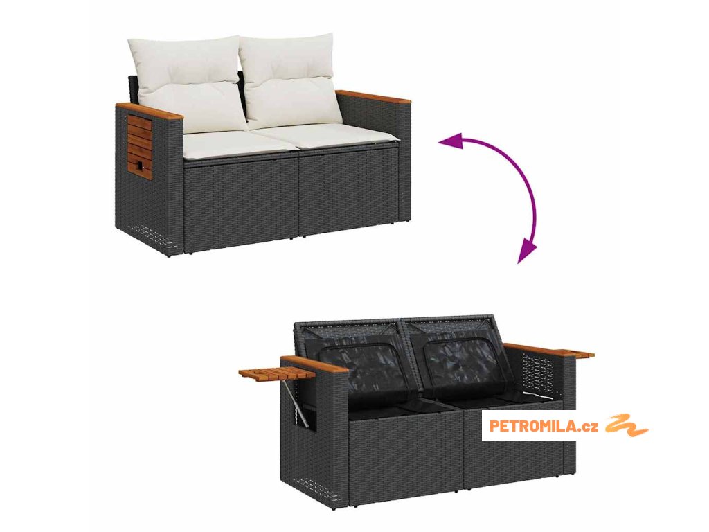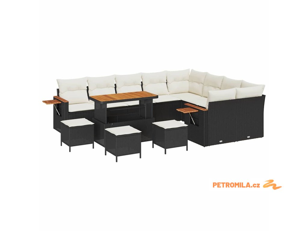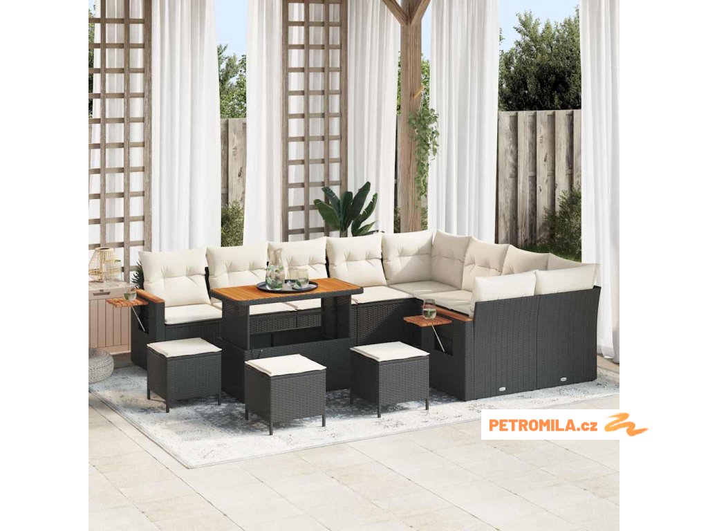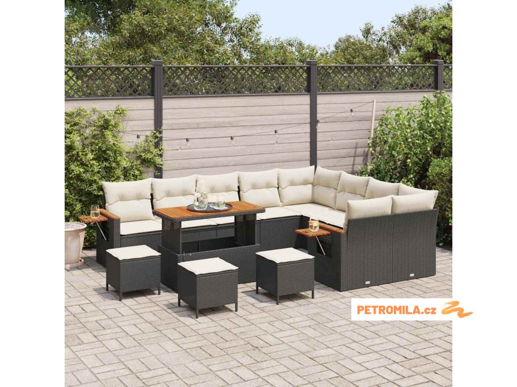 Sada zahradních pohovek 14 pcs Černá a krémová polyratan