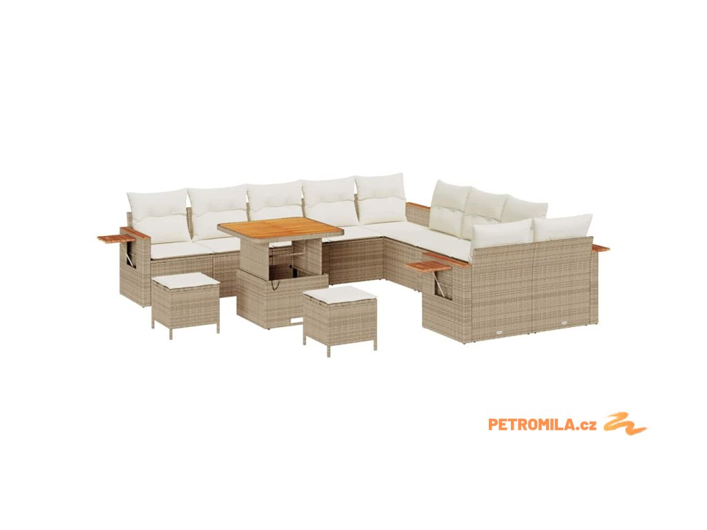Sada zahradních pohovek 17 pcs Béžová a krémová polyratan