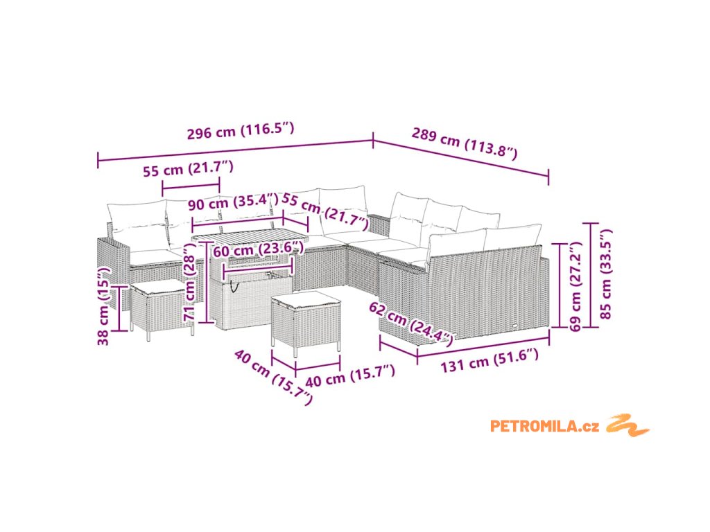 - Posezení: 110 x 55 cm (Š x H)