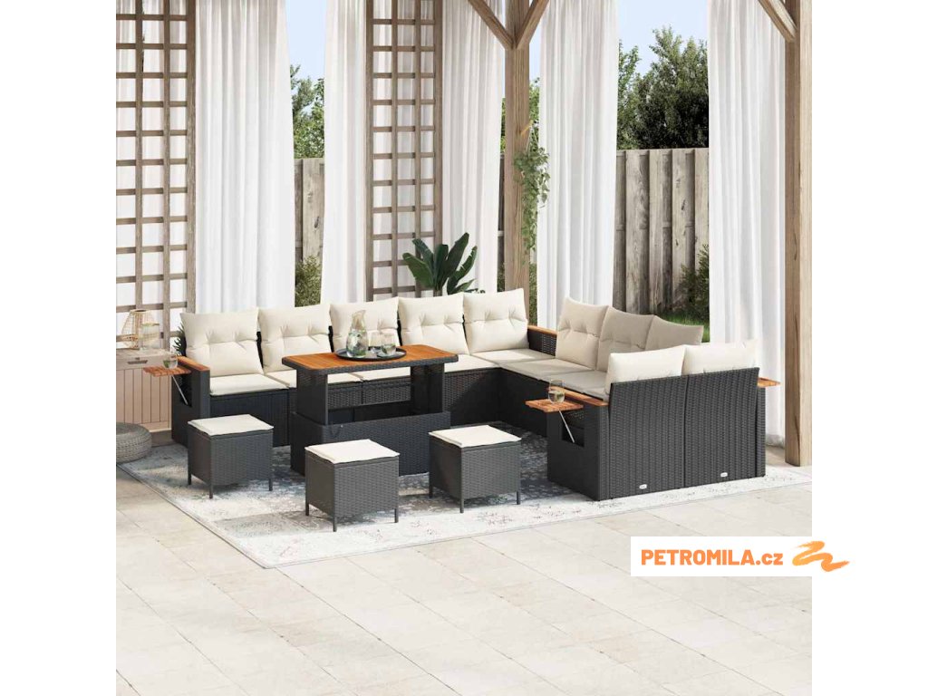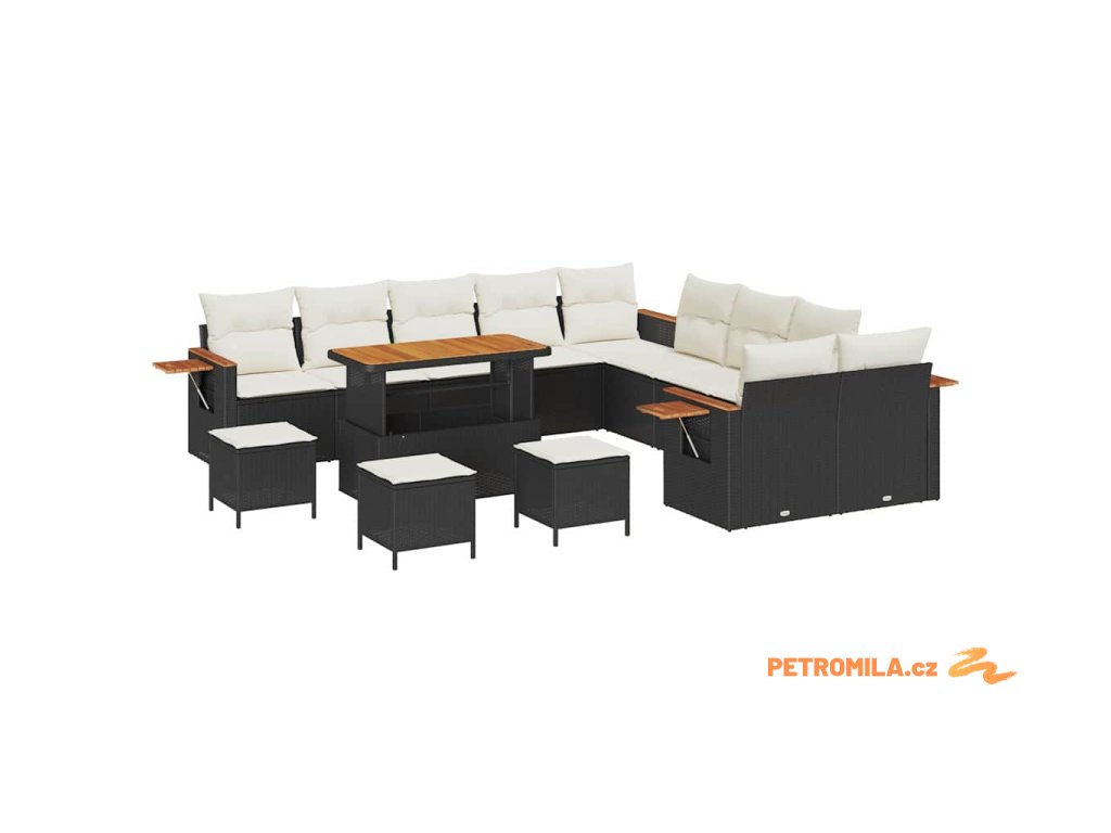 Sada zahradních pohovek 18 pcs Černá a krémová polyratan