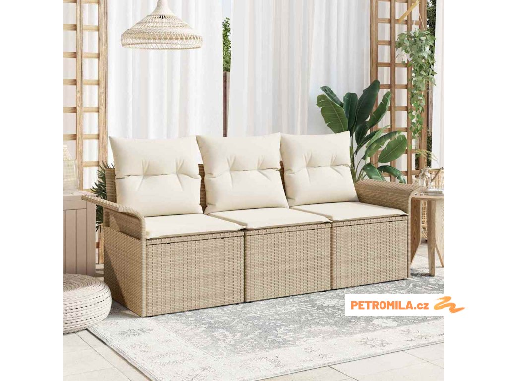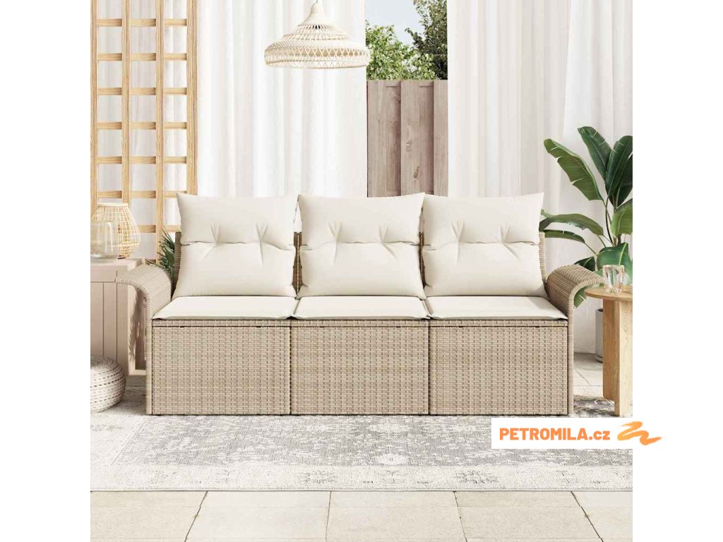 Sada zahradních pohovek 3 pcs Béžová 196 x 62 x 85 cm polyratan