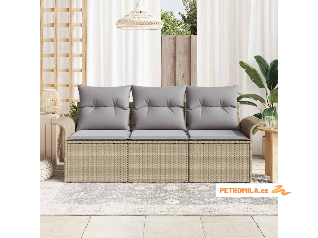 Sada zahradních pohovek 3 pcs Béžová 196 x 62 x 85 cm polyratan