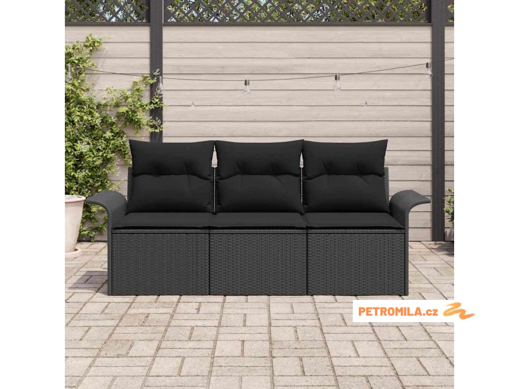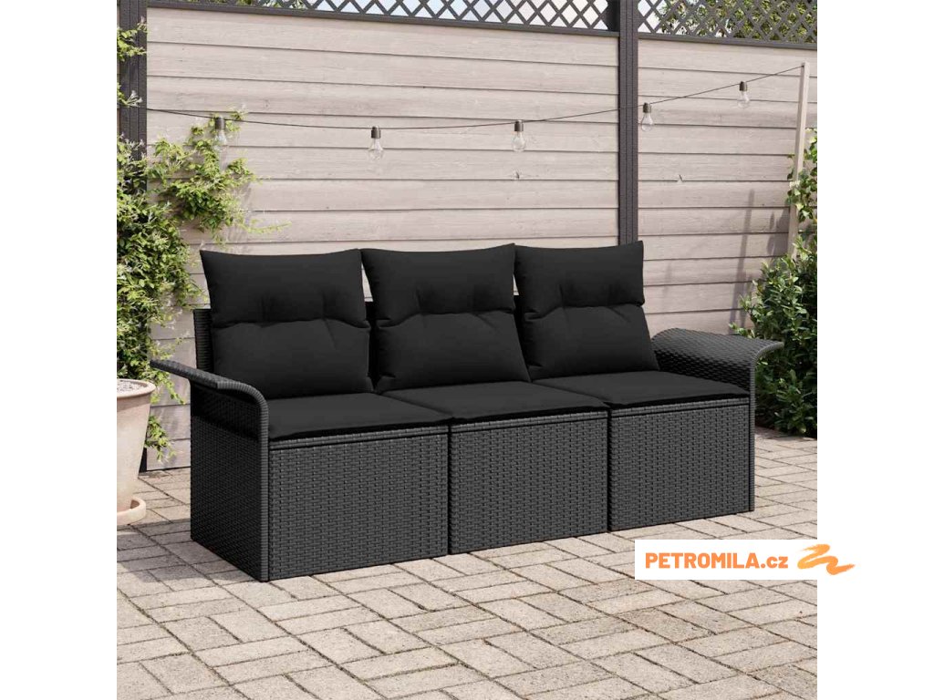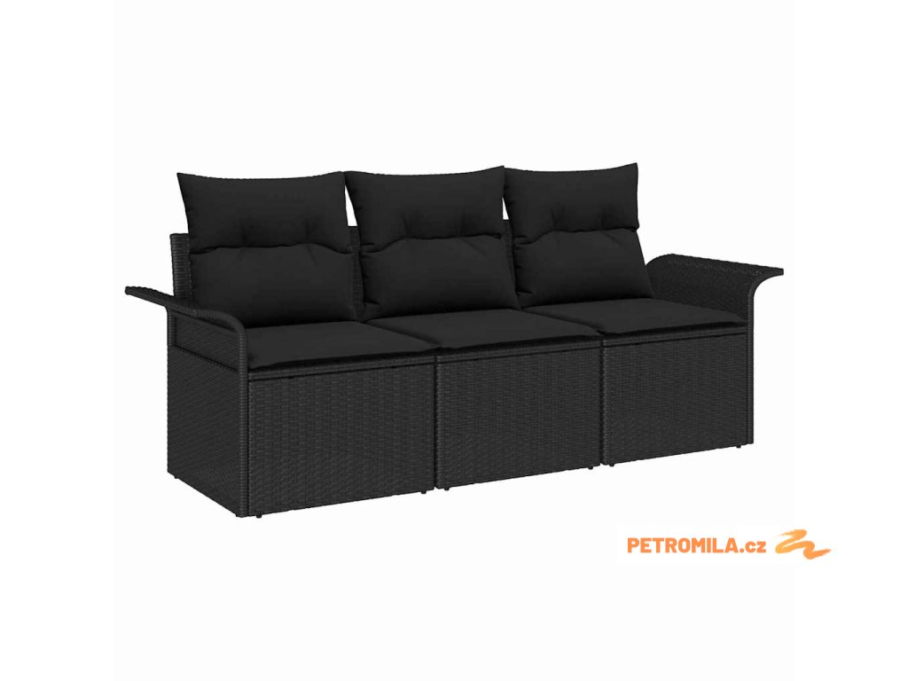 Sada zahradních pohovek 3 pcs Černá 196 x 62 x 85 cm polyratan
