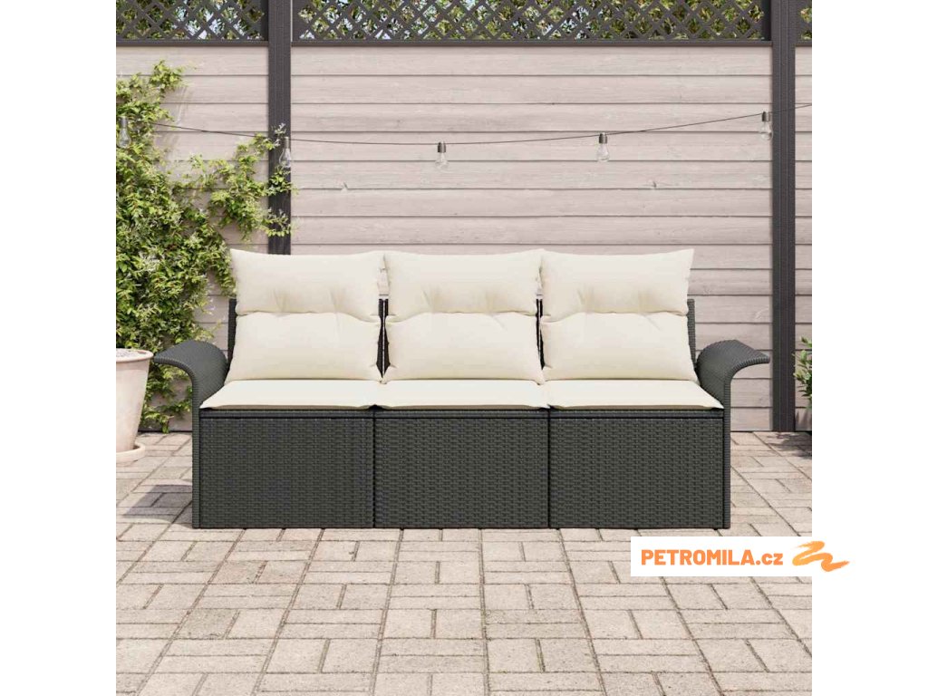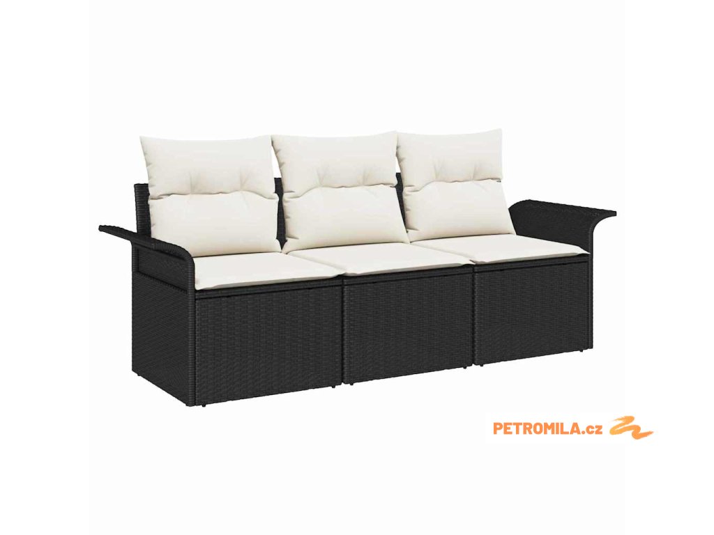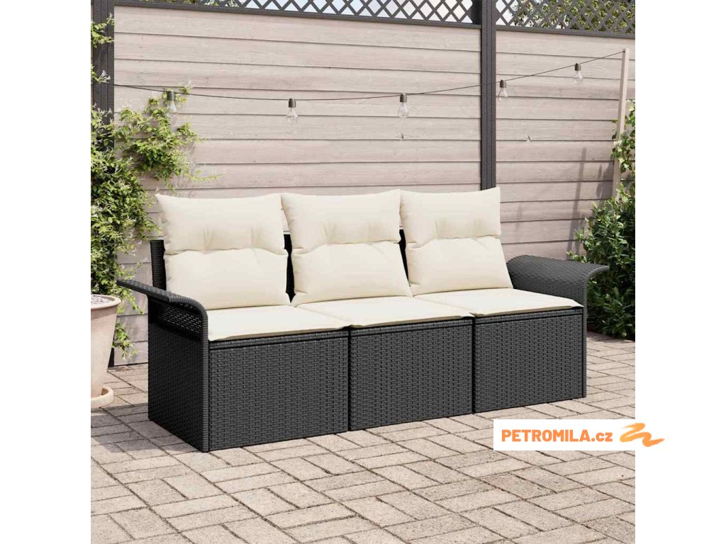 Sada zahradních pohovek 3 pcs Černá 196 x 62 x 85 cm polyratan