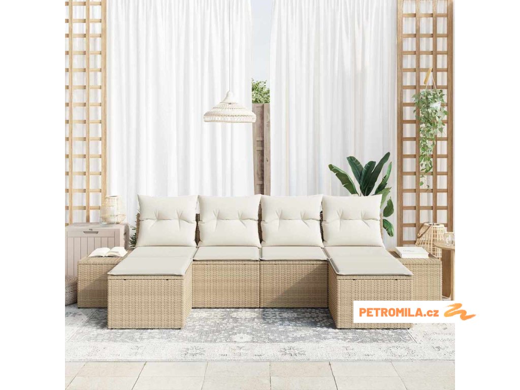 - Víceúčelové venkovní použití: Navržený pro venkovní zábavu, set odolává UV záření a vlhkosti, takže si udržuje svou kvalitu na slunci a v různých podmínkách. Skvělý na terasy, do zahrad nebo k bazénům, poskytuje variabilní řešení sezení pro každé venkovní prostředí. Integrované úložné prostory udržují polstry a doplňky v pořádku.