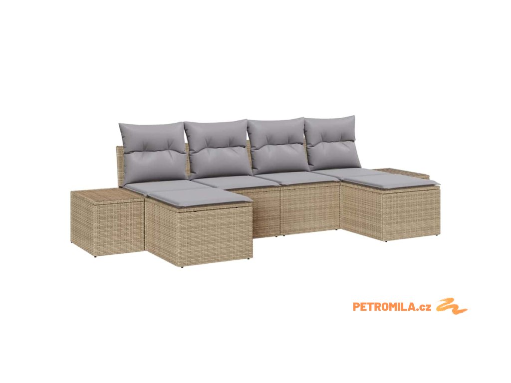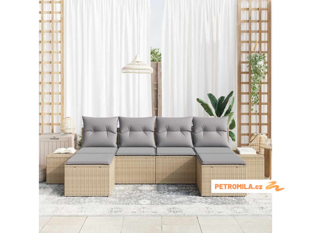Sada zahradních pohovek s polštářem 6 pcs Béžová Poly Ratan