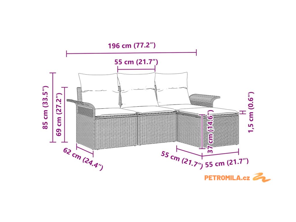 - Odolný povrch: Poly ratan pokrývá hlavní sedadlo a opěrky, vybraný pro svou odolnost vůči povětrnostním vlivům. Tenhle odolný materiál pomáhá soupravě zvládat slunce, déšť a další vnější vlivy, zatímco si zachovává hezký vzhled.