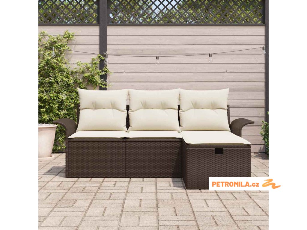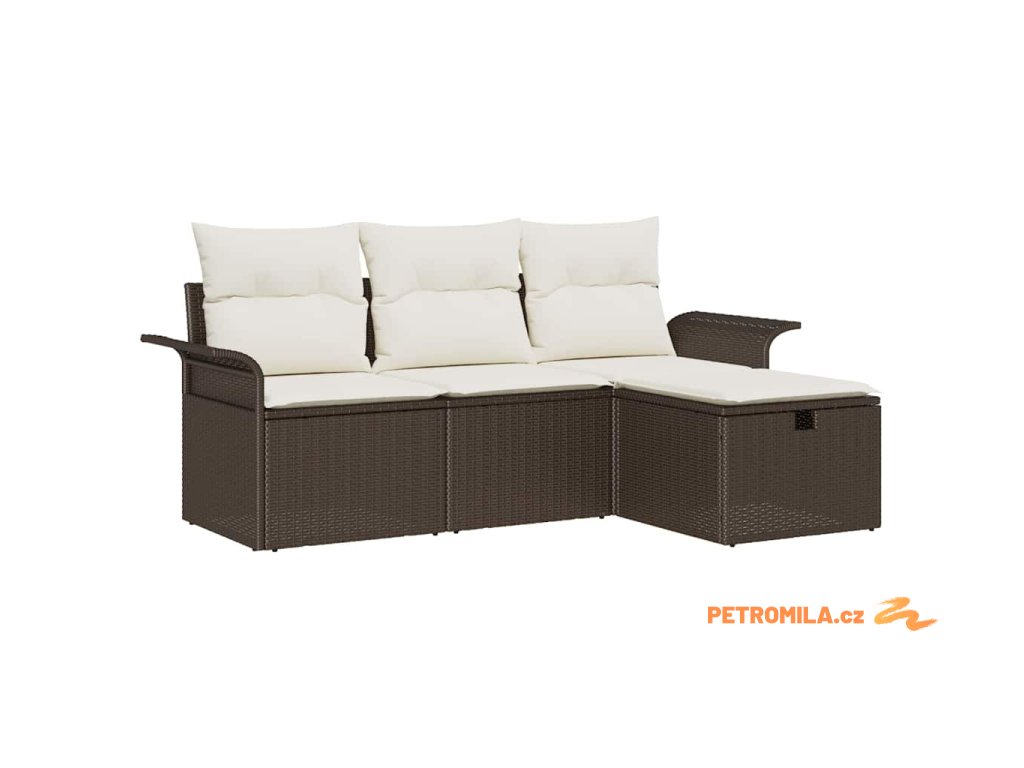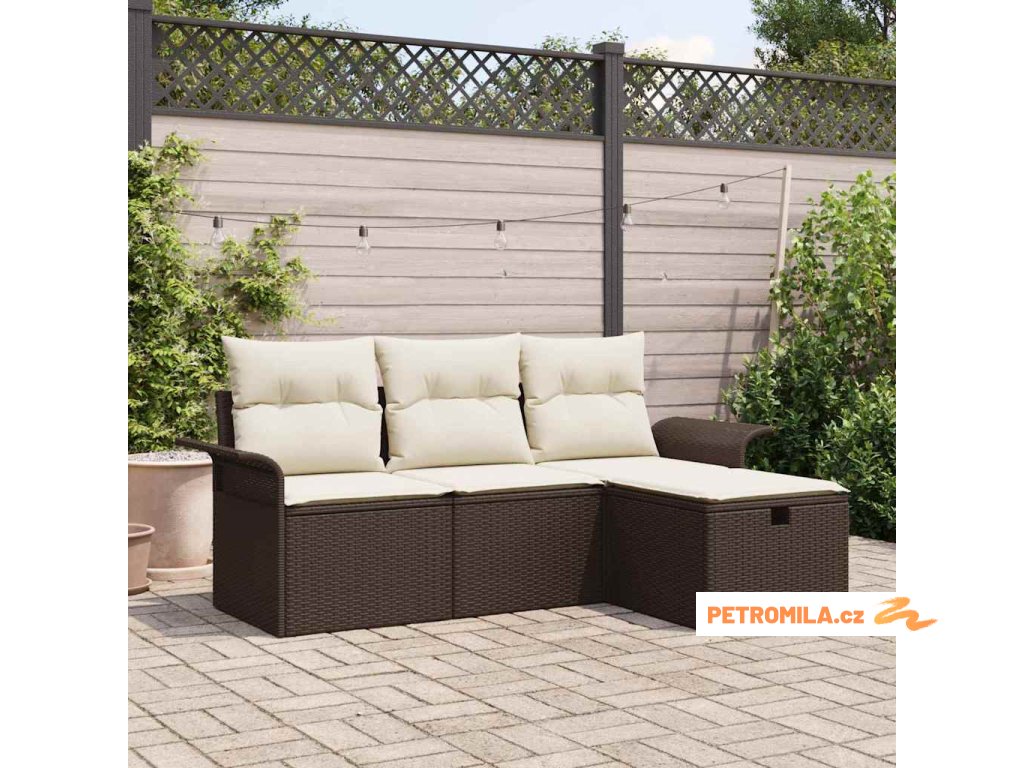 Sada zahradních pohovek 4 pcs Hnědá a krémová Poly ratan