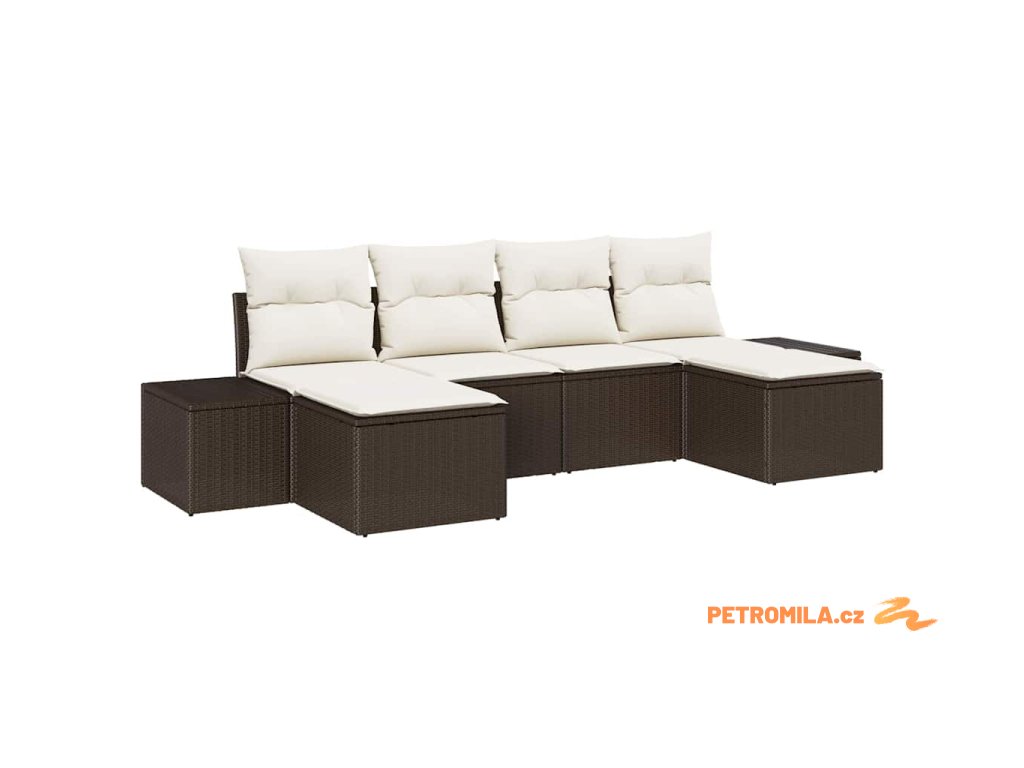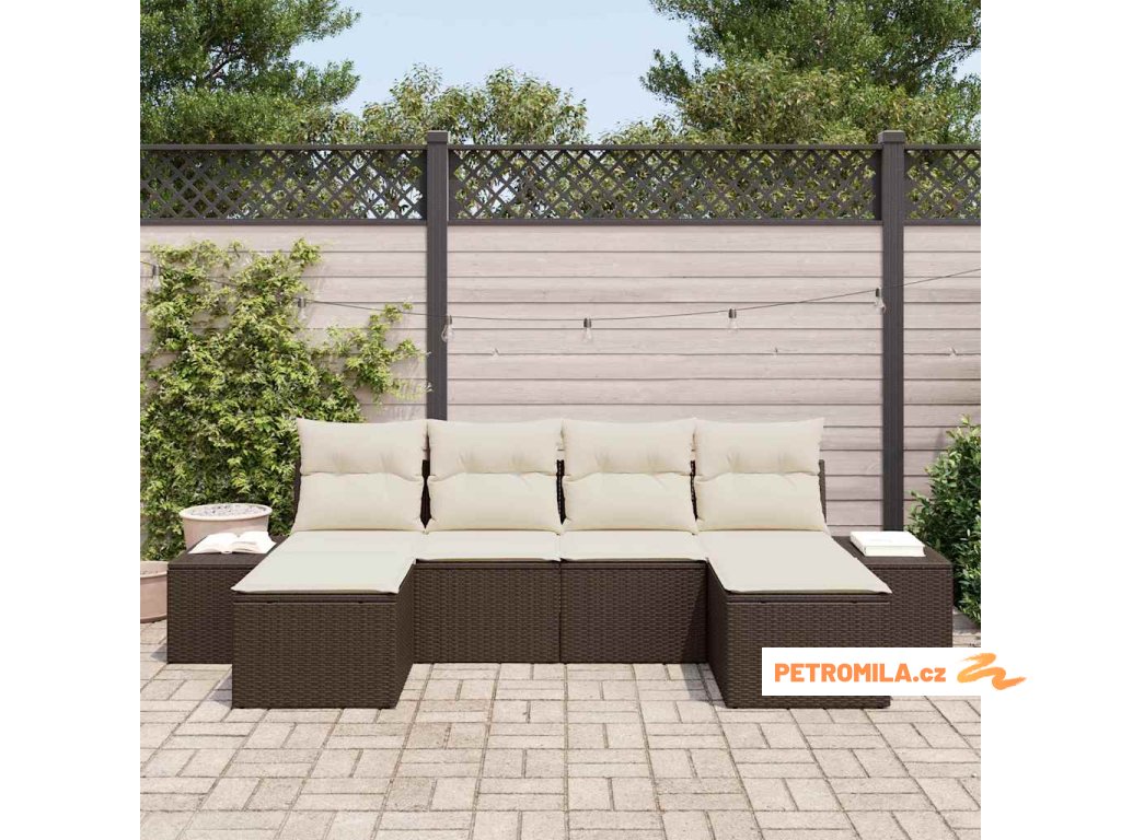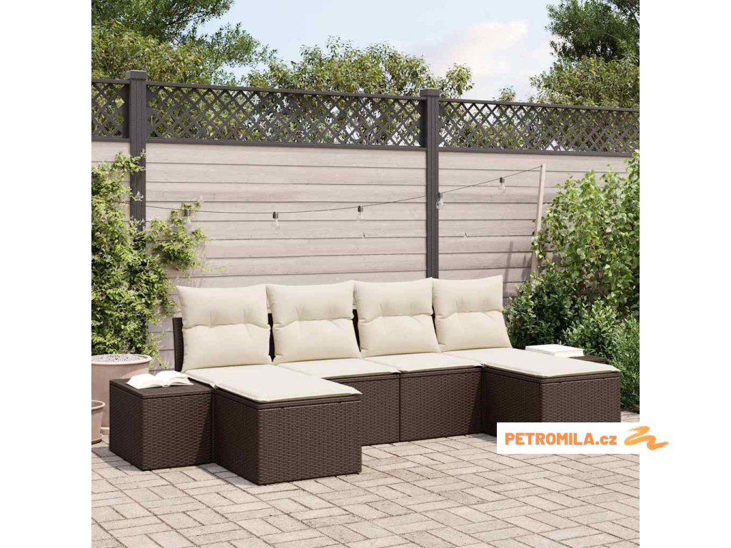 Sada zahradních pohovek s polštářem 6 pcs Béžová Poly ratan