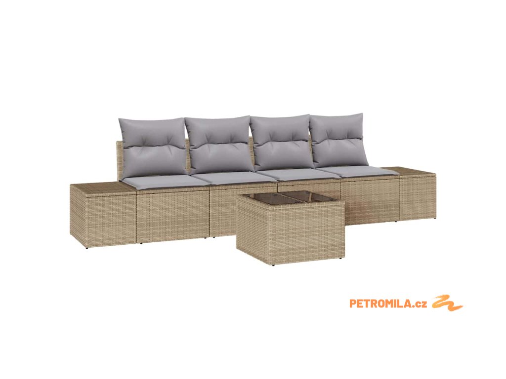Sada zahradních pohovek s polštářem 6 pcs Béžová Poly ratan