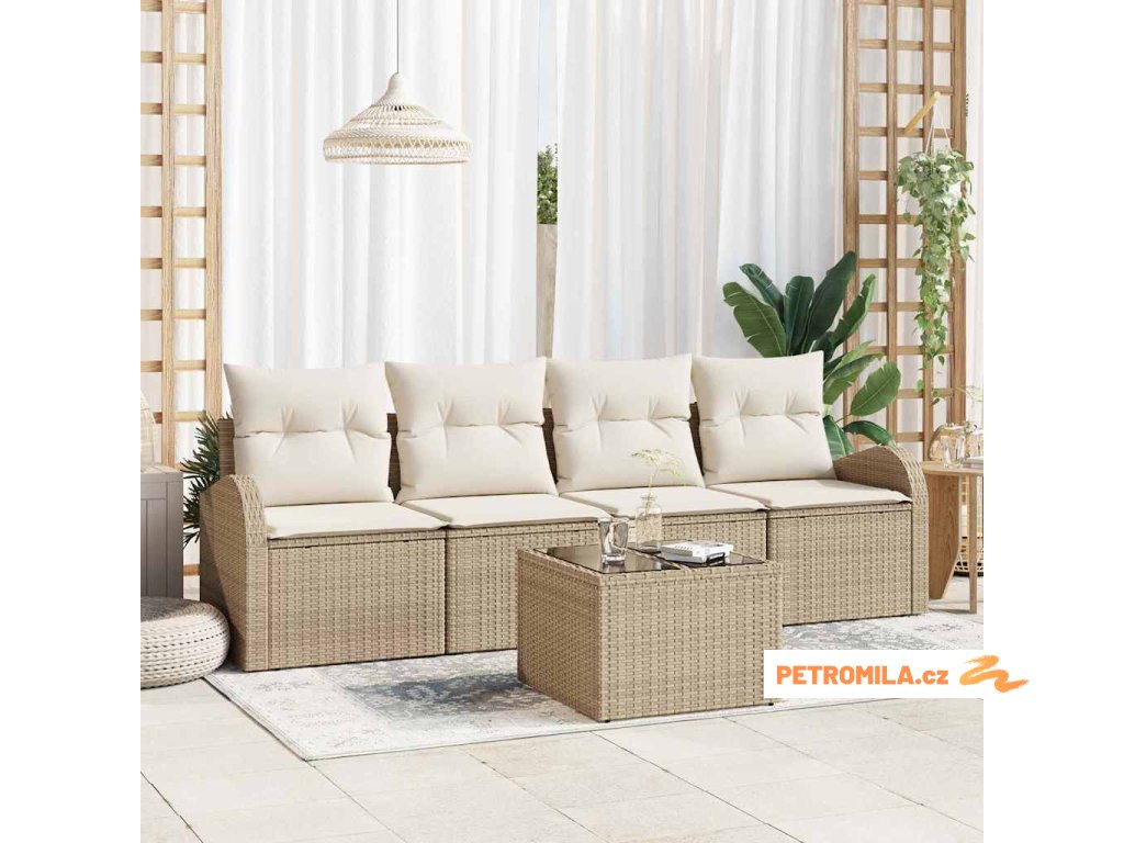 Sada zahradních pohovek 5 pcs Béžová 55 x 55 x 37 cm Poly ratan