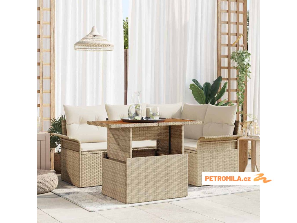Sada zahradních pohovek 5 pcs béžová a krémová 100 x 55 x 73 cm