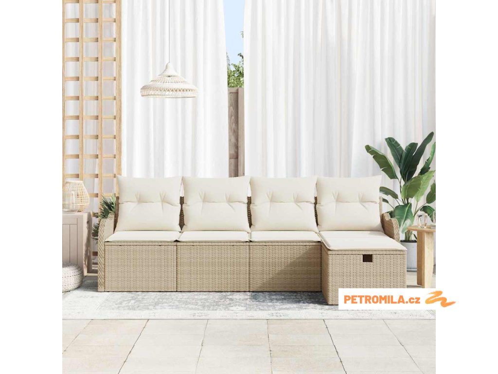 Sada zahradních pohovek 5 pcs béžová a krémová Poly ratan