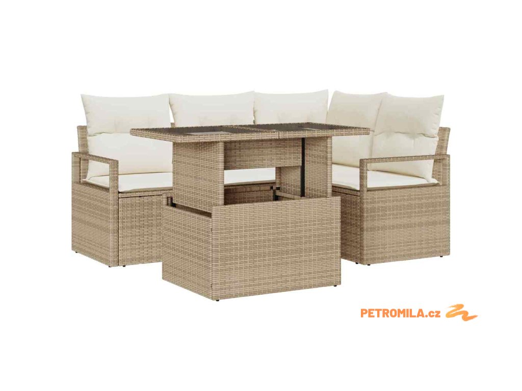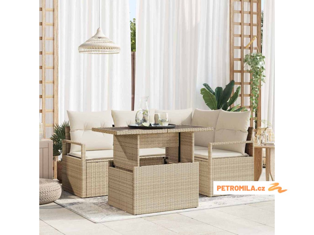 Sada zahradních pohovek 5 pcs béžová a krémová polyratan