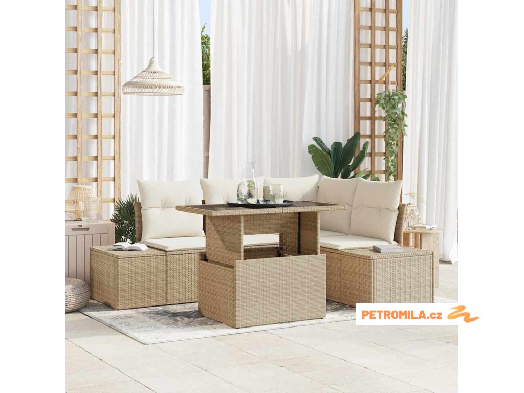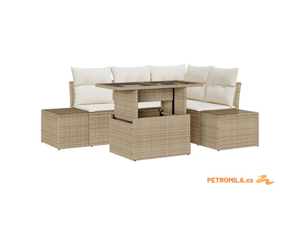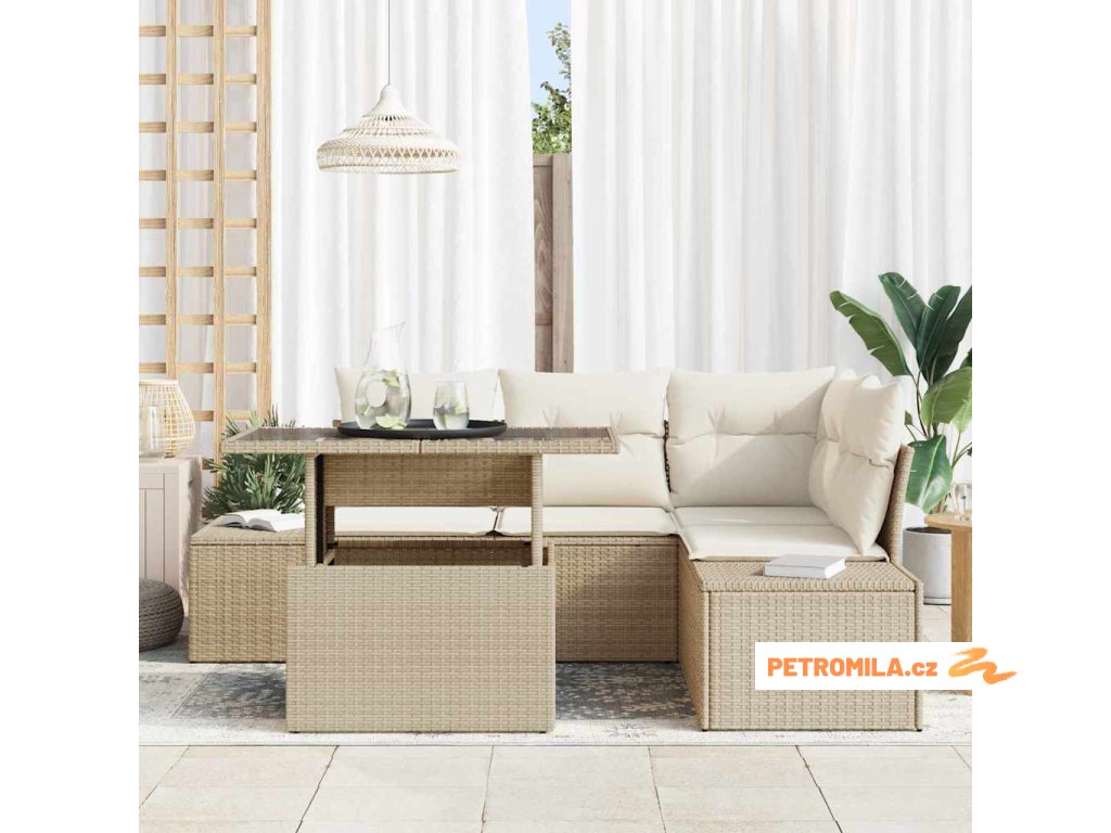 Sada zahradních pohovek 5 pcs Béžová a krémová polyratan
