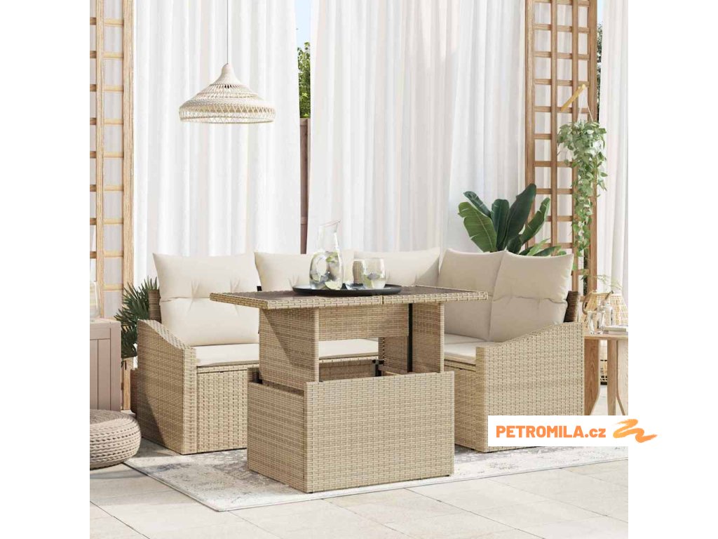 Sada zahradních pohovek 5 pcs Béžová a krémová polyratan
