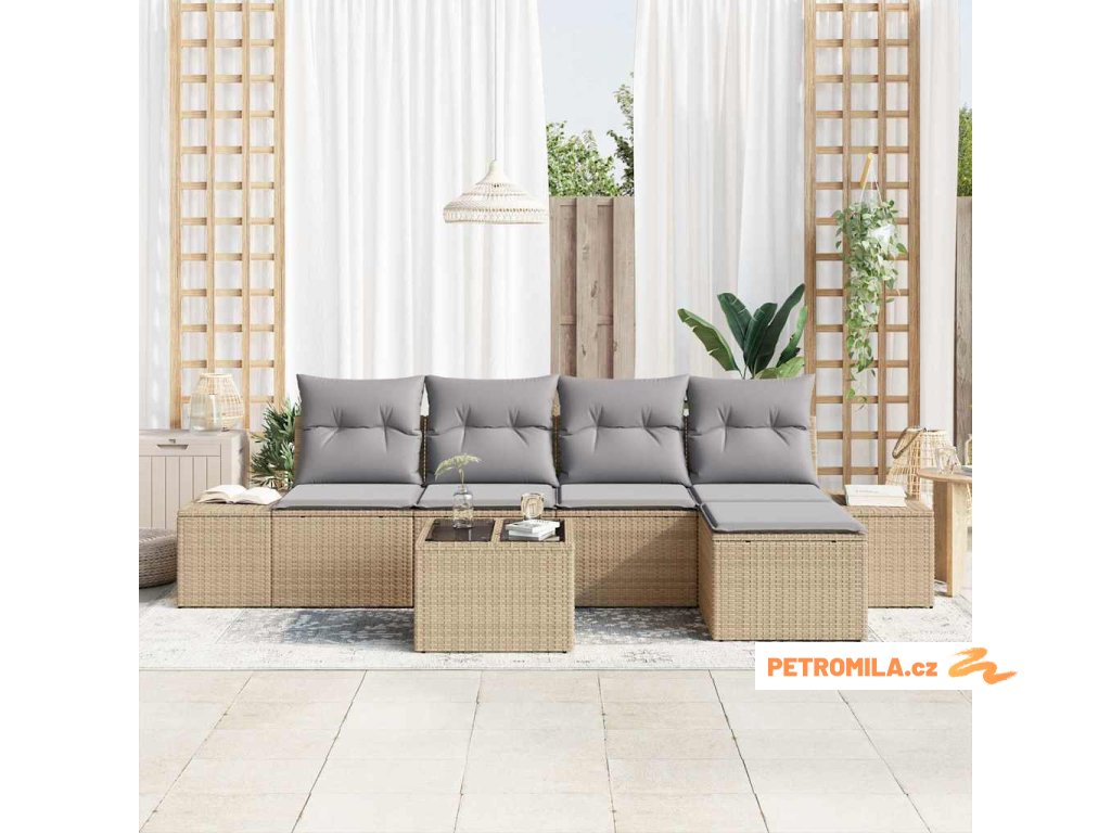 Sada zahradních pohovek s polštářem 7 pcs Béžová Poly ratan
